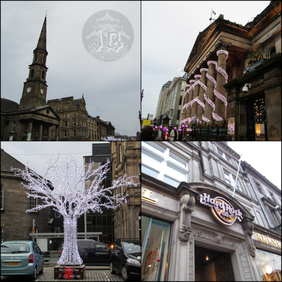We strolled up and down Buchanan Street and the Central Glasgow area a few times – Queen Street, Central Station, the museum of modern art, the Japanese restaurants… We stopped at the HRC again, the Mandela Monument and dropped by St. Enoch’s shopping centre to see the light reindeer and warm up.