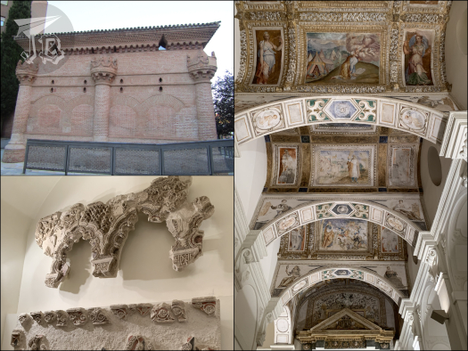 Finally, we walked to what was built as the Duchess’ palace in Guadalajara, Palacio de la Condesa de la Vega del Pozo, today another school, Colegio de los Hermanos Maristas, also Catholic and semi-private, and extremely difficult to visit. We were shown inside and got to see the actual outline of the palace. Inside, we saw the panelling and the ceramic decoration before we reached the inner patio, a mix between Castilian and Andalusian styles.