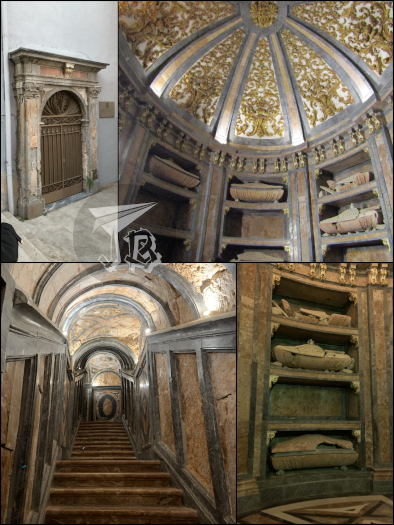 For my last half-day in Naples, I had free entrance to the catacombs Catacombe di San Gaudioso, one of the monuments in the Catacombe di Napoli (Catacombs of Naples) network. These are in a really bad part of town that the cooperative is trying to revive – and they say they’re being successful. San Gaudioso – Saint Gaudiosus of Napoli – was a North African Christian bishop who fled persecution into Naples. His relics were buried in the Catacombs of San Gennaro and then transferred to his own around the 6th century. The Catacombs of San Gaudioso were “popular” at first, but they became abandoned, until eventually they were rediscovered and entrusted to the Dominicans in the 17th century. The Dominicans took over and developed a rather morbid interment tradition for the nobles and clergy. The body was drained, then buried. A wall would be built in front of the tomb, and the deceased person’s skull placed on it, with the frontal bones facing forwards. The body was fresco-painted as a skeleton underneath, with symbols and writings around it. Today you can see those frescoes, but the front part of the skull has been smashed away. There is also the actual tomb of Saint Gaudiosus and other 17th century paintings left. If you ask me, the guide went a bit into… excessive graphic detail about the body preparation.