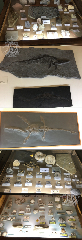 The access is through a marble staircase and the first corridor is already packed with display cases, even before you get to the main area. These cases show small and not-so-small fossils and replicas, displaying the first taste of the evolution of life on earth.