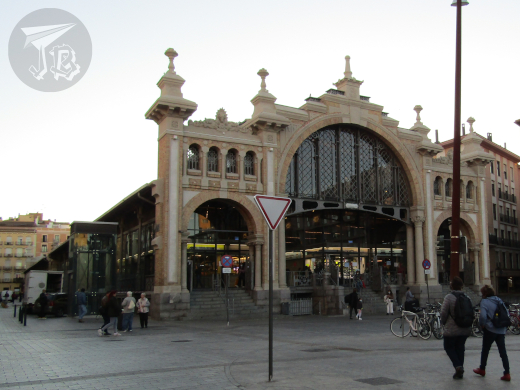 Between the church and the square we walked by the central marketplace Mercado Central de Zaragoza in the late 19th and early 20th century, in a combination of stone and iron-and-glass architecture.