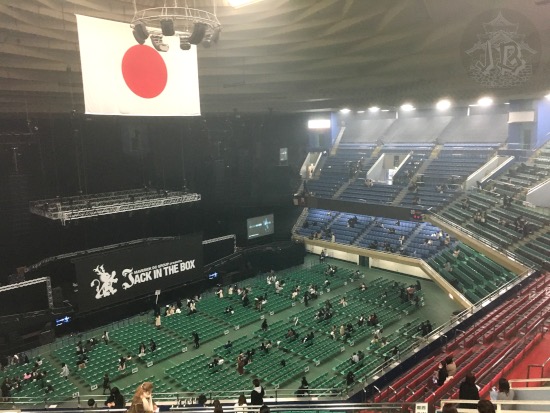 After that, I headed off to “MAVERICK DC GROUP 35th Anniversary JACK IN THE BOX 2016” (mouthful, huh?), because D****e had gotten her hands on tickets, as Hyde was going to show up there. The concert was held in the Nippon Budokan [日本武道館], which looks a bit on the smallish side from above, as we were very far away (last minute tickets were last minute indeed).